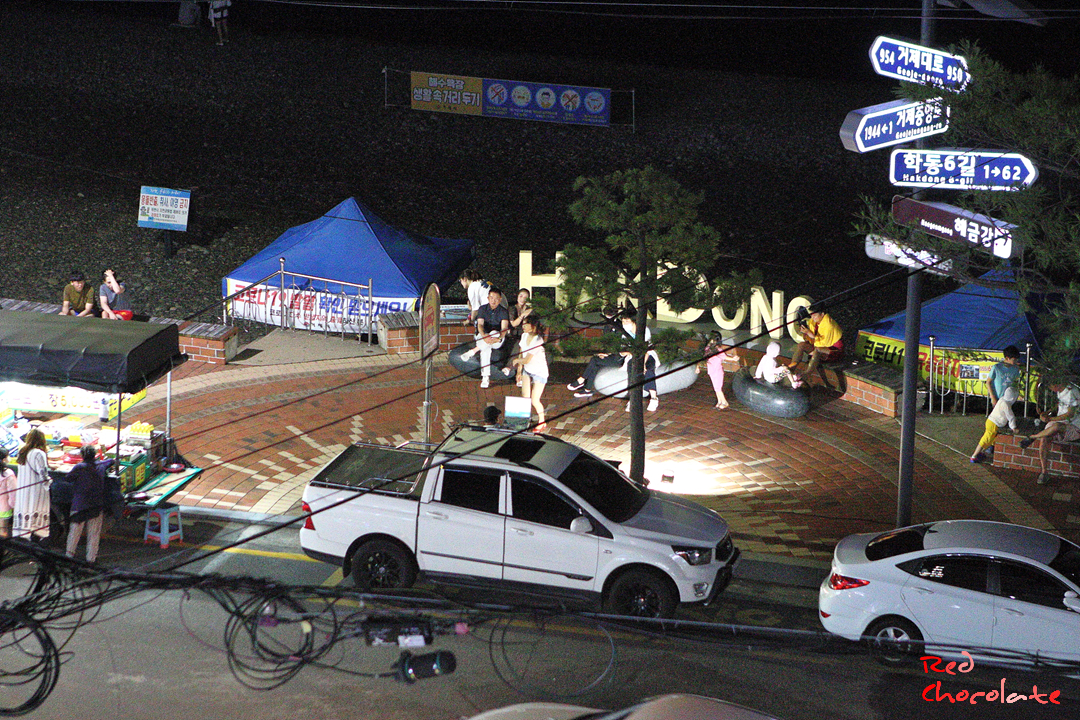 오히려 낮보다 밤이 더 한여름 해수욕장 분위기 같다.