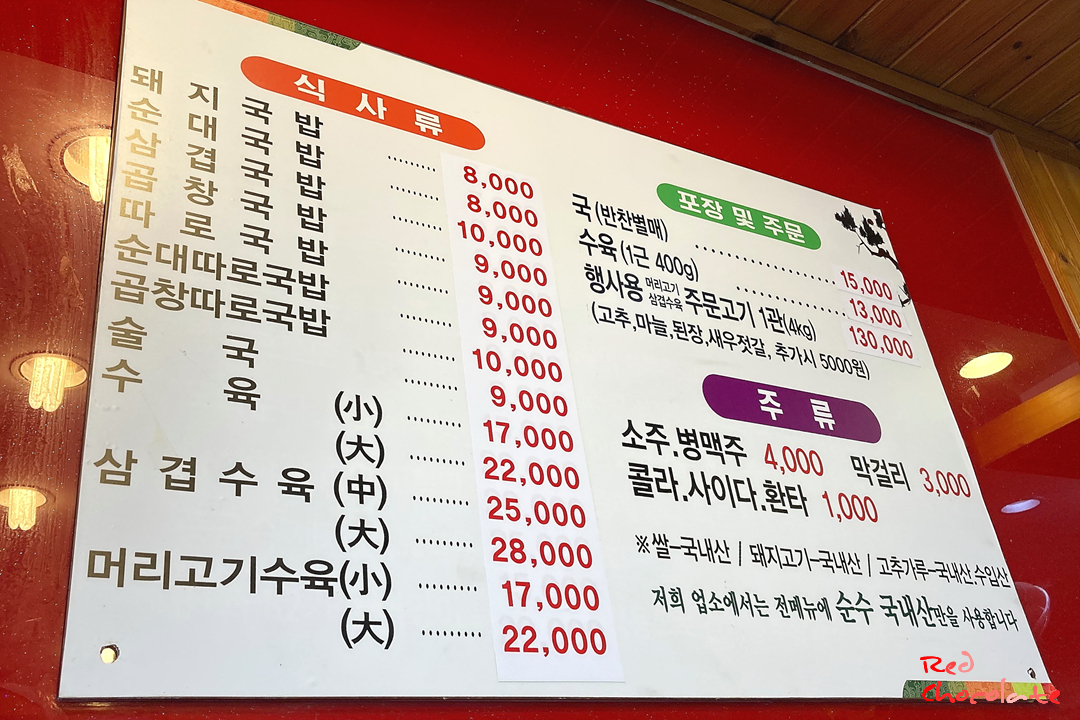 주말이라 그런지 행사용 맞춤 고기 수육 판매도 많다고 하신다. 머리고기, 돼지고기, 삼겹수육, 편육 등등 주문 가능한 종류도 다양하고 무엇보다 1년 365일 언제나 주문 가능하다 하시니 단골손님이 많은 것 같았다.