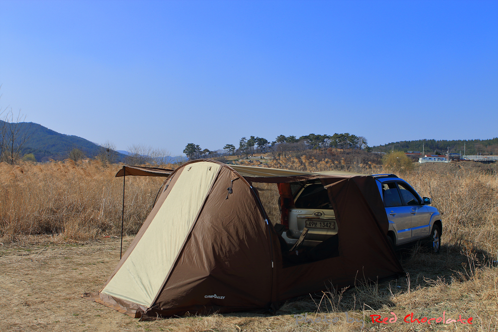 날씨가 어찌나 좋던지 햇살도 뜨겁고 바람도 살랑살랑 불길래 텐트를 쳐버렸지.... 타프를 칠까 하다가 타프보다 이 차박텐트가 더 치기 편해서 트렁크 뒤져 찾아냈다... ㅎㅎㅎ 바람도 막을 겸해서... 타프보다 훨~~ 나은 듯... ^^