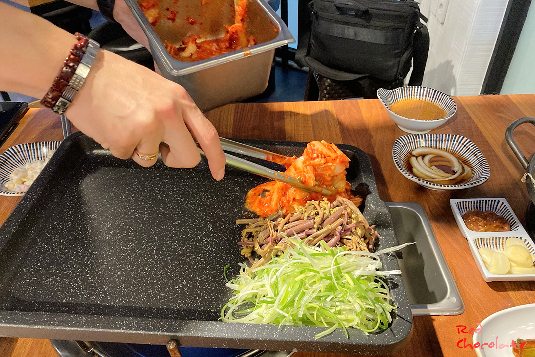 파채, 고사리, 김치, 팽이버섯을 불판 아래쪽에 듬뿍 올려놓는데 벌써부터 군침이... ^^