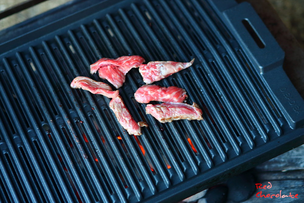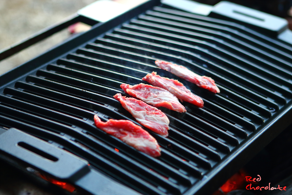 첫 스타트는 숯불에 굽는 한우.