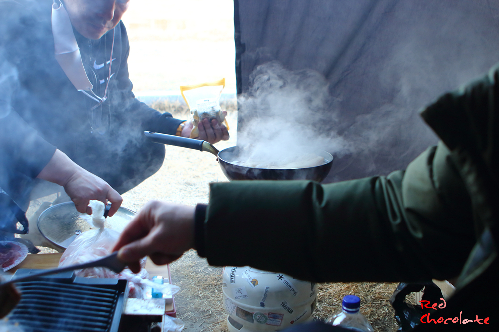 한겨울 동계 캠핑의 꽃이지. 화로대 장작불.