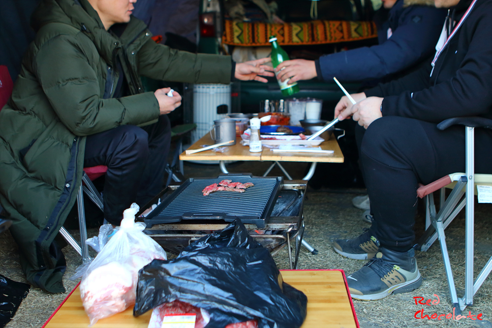 캠핑을 다니는 친구들이어서 각자 빠르게 움직이니 금세 고기 굽고 술 한 잔씩들 하고 있네 ^^